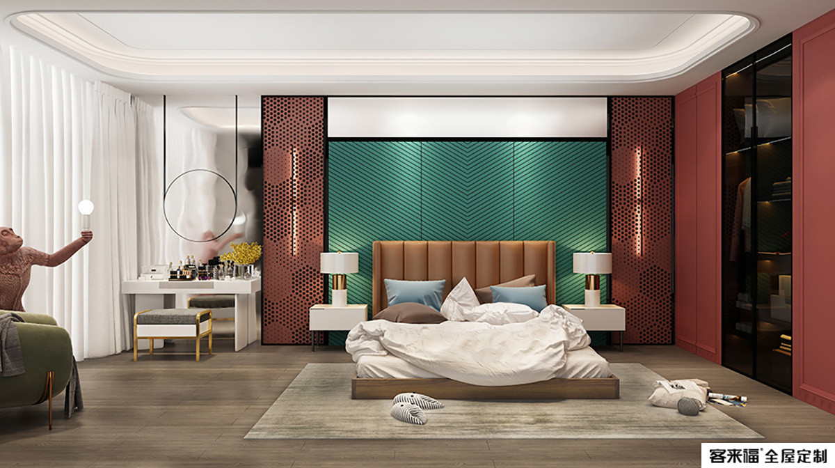 The conversion between warm and cold tones makes the bedroom look warmer, and the simple combination of elements also has its own unique charm.
