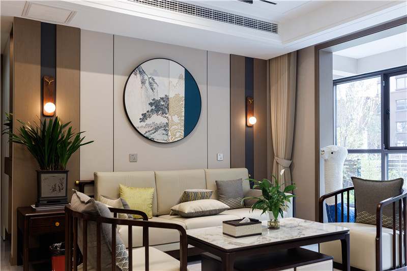 恰到好处的生活是别样的精致,进到客厅,无主灯设计简约舒适;新中式的特点让客厅精致又不会显得繁杂,中式元素干净利落的融入,让整个空间也成为一道风景。
