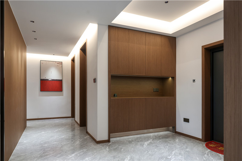 玄关处的设计让人眼前一亮,柜子以米兰·(milan)橡木展现中式设计的分量感。
