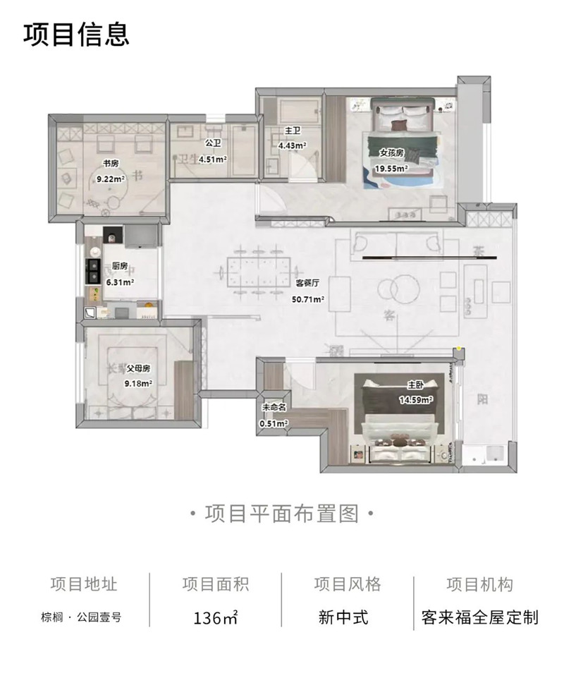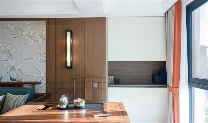 本案新中式风更贴近年轻人审美,使用简约的设计手法满足日常功能需求,儒雅的配色与装饰构建浓厚中式风韵味,整体落地效果摆脱对新中式固有思维的“偏老气”“偏俗气”,空间氛围集高级、大气与雅致于一体。